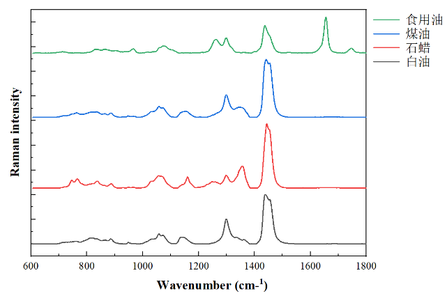图1 食用油、煤油、液体石蜡和白油的拉曼光谱图
