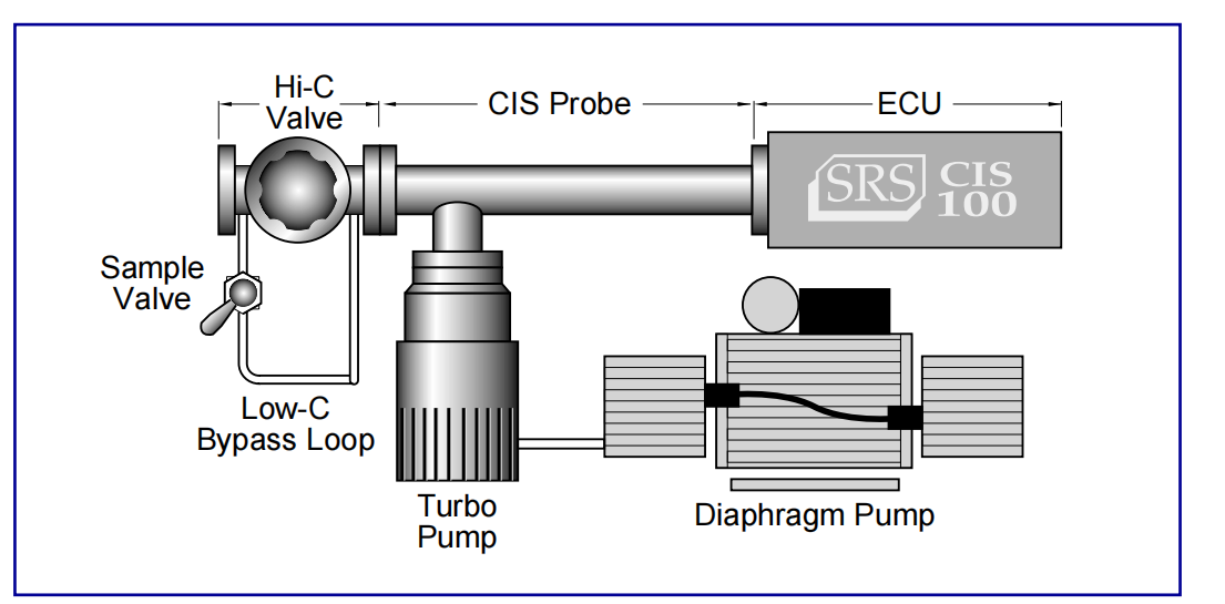 CIS 分析仪可以直接取样气体高达约 10 2 Torr 压力水平。压力上限是由离子中性碰撞的平均自由程的减少来设定的,这种碰撞发生在较高的压力下,并导致离子的显著散射和灵敏度的降低。然而,操作并不局限于对压力低于 10 2 Torr 时的气体进行分析。更高的气体压力可以通过分压进气系统(PPR)来取样,就像它用传统的 RGAs 所做的一样。一个与 CIS 分析仪的电导率相匹配的减压气体入口系统,将允许传感器采样高达 10 Torr 的气体压力。在 PPR 系统的情况下,所付出的代价是降低采样速度,在样品入口的气体混合物的分流,以及在电离器上可能产生的记忆效应。