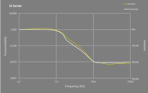 i4是一种先进的主动隔振台,它可抵消敏感设备的不必要振动和其他干扰对高精度测量设备产生的影响。具有低剖面低碳设计、操作简单、稳定时间短、弱的低频共振等特点。隔振从0.6Hz开始, 在 10 Hz 时达到*佳效果,40 分贝,99%的振动被隔离。另外,低频共振是主动减震台和被动减震台的*大区别,在低频率震动中,被动隔震台将会放大振动而不是隔离振动。隔震台的工作不需要压缩空气,只需要供应电源的插座。在六个自由度的方向上,i4系列隔震台都提供了主动补偿,以实现隔震效果。