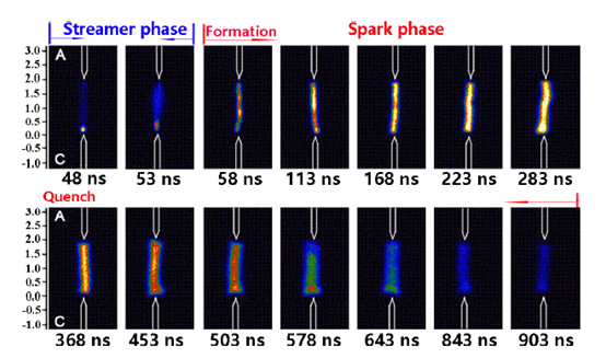 图2. 火花放电通道演化的ICCD图像