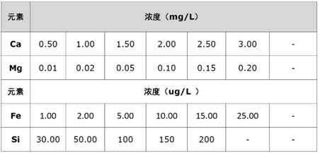 按下表配制各元素的系列标准溶液,待仪器工作稳定后,依次进样,根据浓度和吸光度,绘制标准曲线。