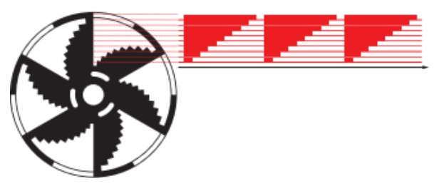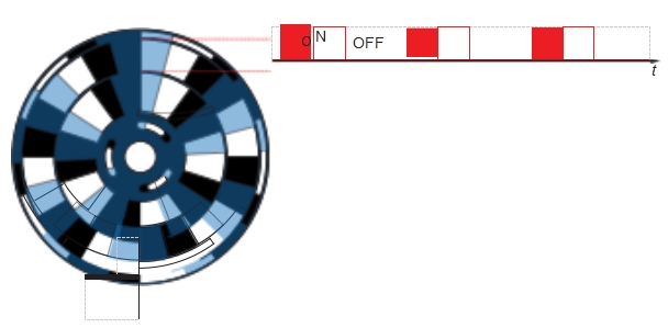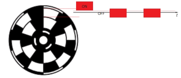 图1: O54256 5/6双槽叶片以50%占空比调制光束: Ton = Toff .