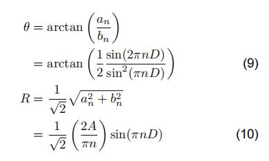 使用an和bn,我们可以计算一个已给定的谐波、占空比以及峰峰值的信号对应的振幅和相位(锁相放大器的R和θ输出)