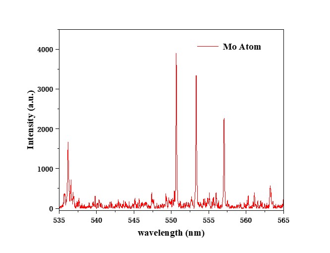 Mo原子在delay:250ns,width:5us下的发射谱线: