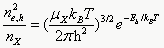 。从图3中可见,对于钙钛矿体系,在低激发浓度时,t=0时荧光强度与功率密度成平方关系,而在高强度时,接近线性关系,其反映的是激发态由自由电子空穴向激子态的过渡。因此,钙钛矿(以及其他任何光电半导体)中,其激发态类型不是一成不变的,而是和激发浓度紧密相关的。其中在一定激发浓度范围内,自由电子空穴和激子的比例可由Saha关系式来推导:其中ne,nh, nX分别为电子,空穴及激子的浓度。X为激子的有效质量,Eb为激子束缚能,kB和h分别为玻尔兹曼和普朗克常量。当然,实际半导体材料中,缺陷态以及高浓度下电荷屏蔽效应的可能同样会影响到激发浓度相关的荧光强度。