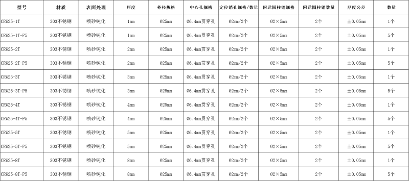 Z0LIX 提供的 Ø25mm垫片,可增加Ø25mm 无底座光学接杆高度,其Ø25 mm垫片有1mm、2mm、3mm、4mm、5mm、8mm 六种厚度规格可选。垫片顶部带有两个为Ø2 mm的定位销孔,购买垫片时附赠2个圆柱销,用于定位垫片在无底座光学接杆上的位置。垫片并提供单个装与五个装两种规格。