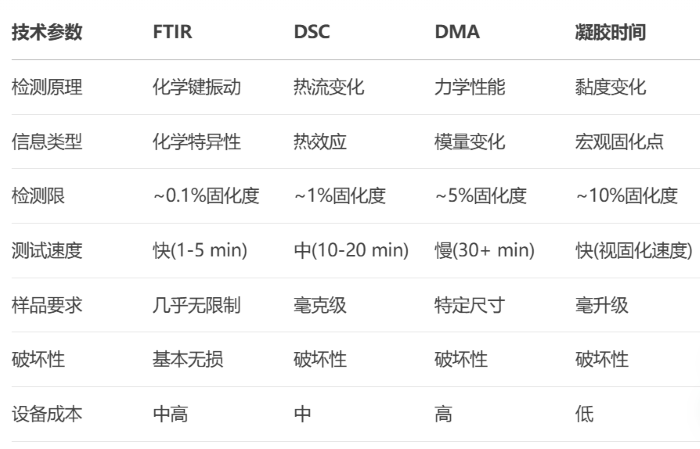 综上比较,FTIR方法在测定环氧树脂固化率方面具有一些优势和特点,包括:
