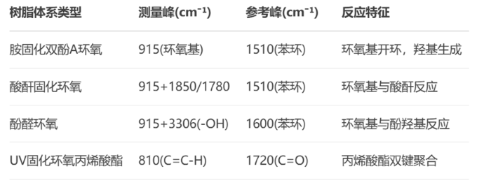 对于不同类型的环氧树脂体系,特征峰有如下: