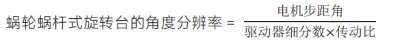 当电机的步距角为 1.8°,蜗轮蜗杆的传动比为 180 :1,驱动器细分数为 8 时,分辨率 =