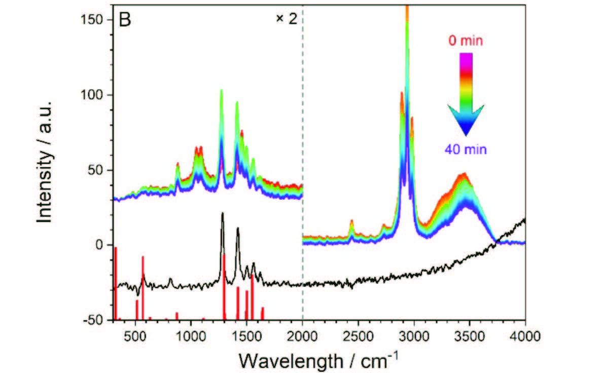 图 MOF 拉曼光谱随时间变化曲线,采用平面波密度泛函理论计算