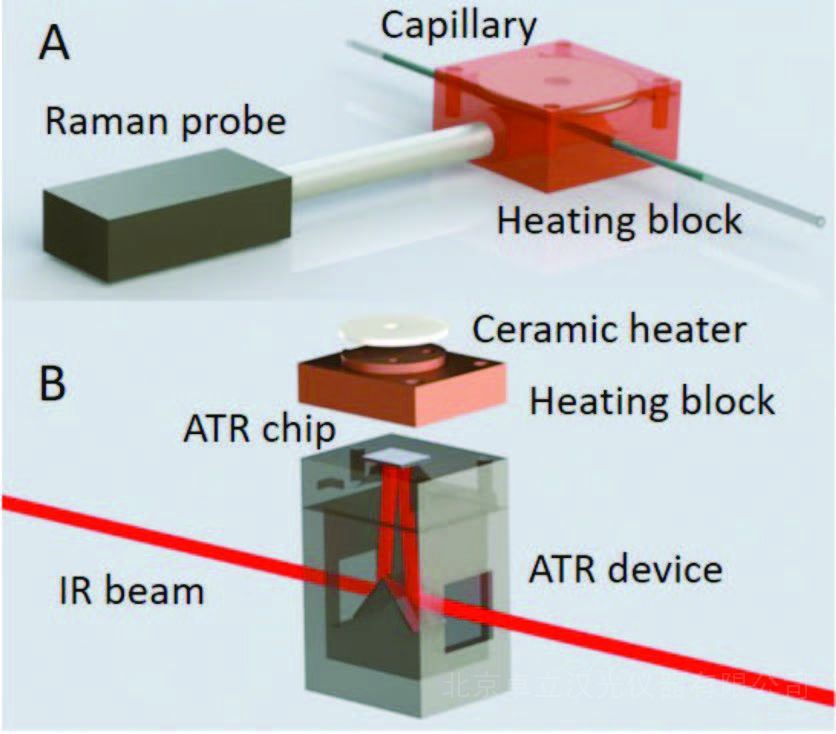 Lu W [3] 等人应用光纤拉曼原位监测微芯片反应器中金属- 有机物Co-MOF-74 生长过程,实验时FIR 和WAVS 提供物质的原子坐标和晶格信息,拉曼和MIR 提供分子结构信息并获得成核生长曲线。