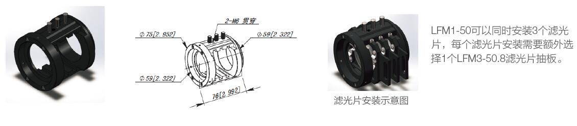 开放式,*多可安装3块滤光片,需要额外配置LFM3-50.8