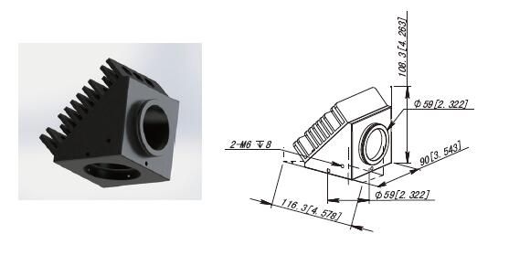 光束转向组件可以对光束进行 90 度转折,适用波段为紫外到可见光波段。 如果需要单独反射某个特定波段,可在接口上安装相应滤光片。