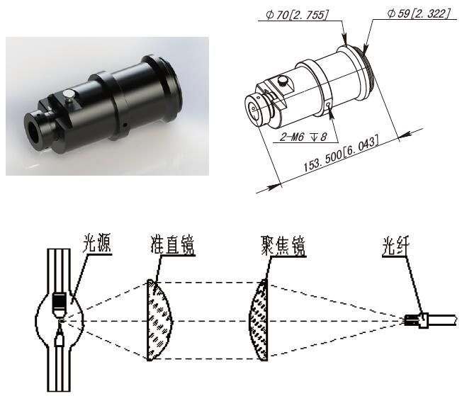 适合于光源已安装150mm 焦距透镜的光源输出,兼容光谱仪安装或无安装SD 滤光片轮。